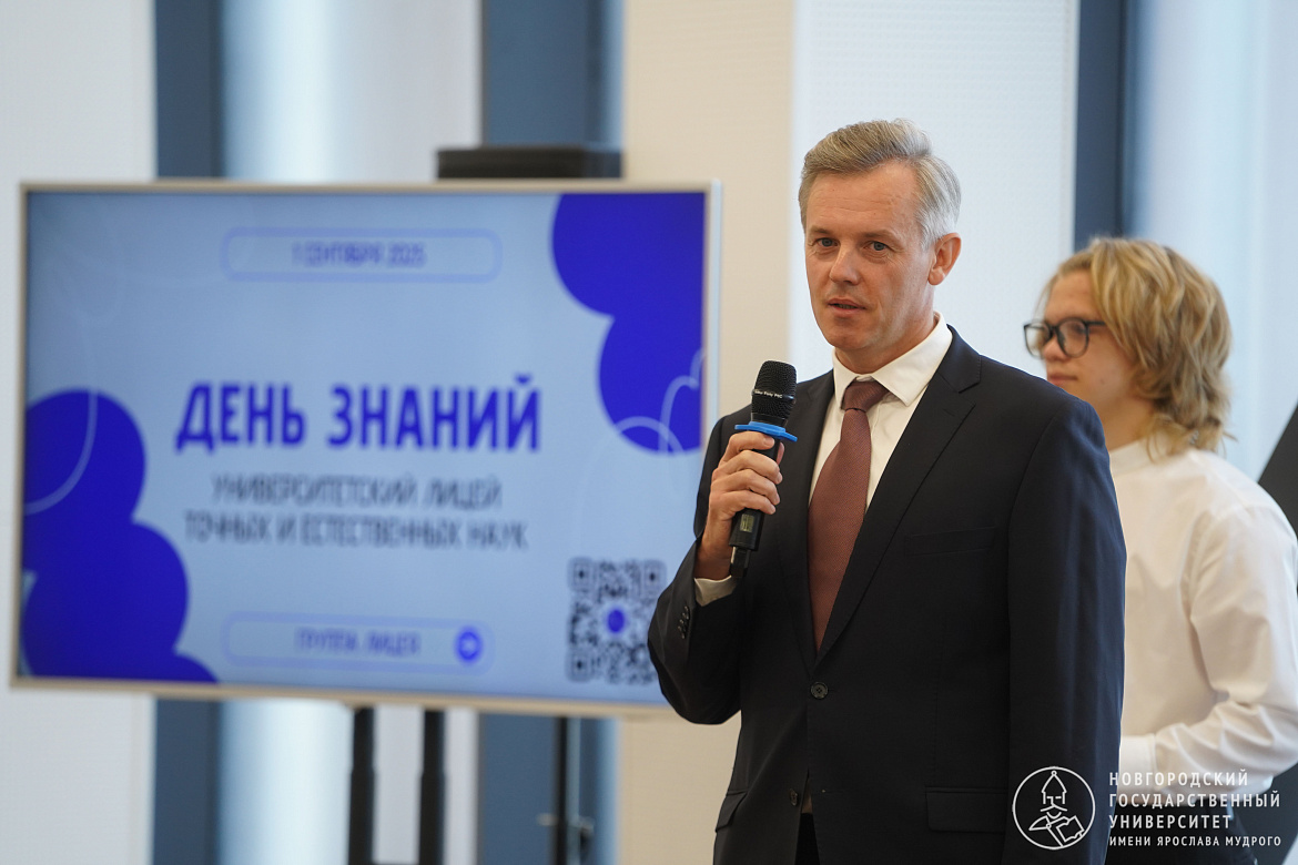 День знаний для учащихся Университетского лицея прошёл на площадке НовГУ ИНТЦ «Валдай». С этого года учащиеся лицея смогут задать вопросы главным лицам НовГУ в рамках программы «Наши люди». В День знаний первым гостем программы стал проректор по научной работе и инновациям Константин Харламов.