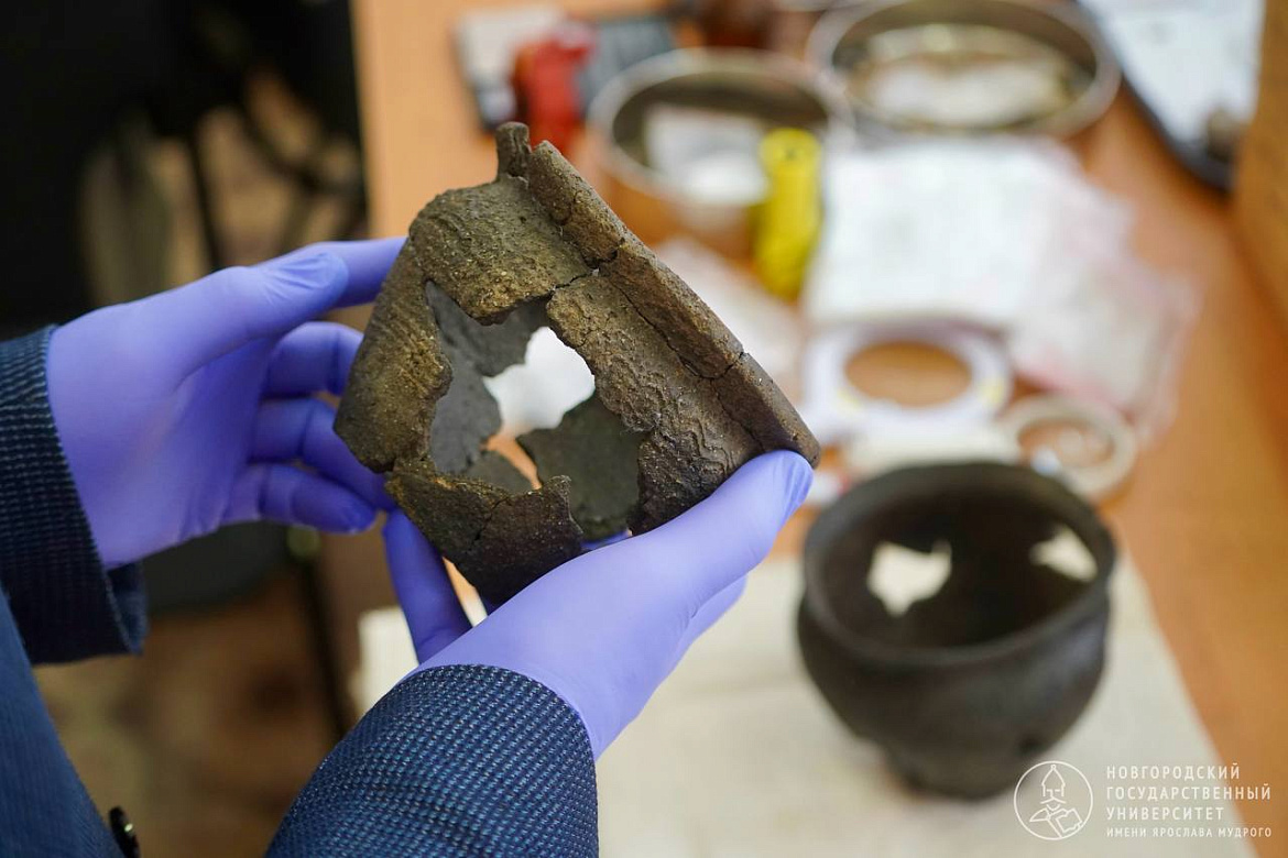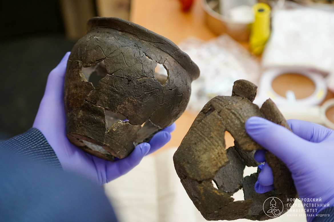 Также в одном из жилых срубов в слоях XI- рубежа XI–XII веков были обнаружены развалы обломков нескольких керамических сосудов. Два из них уже удалось частично собрать — это кухонные горшки. Их форма позволяет сделать выводы о развитии гончарного ремесла в этот период.