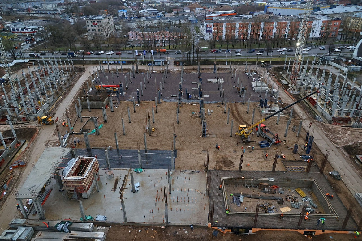 – Уже смонтировано 165 колонн здания многофункционального комплекса. Всего их по проекту 187. Это важный этап строительства, так как правильное выполнение данной стадии определяет общую устойчивость и несущую способность всего строения. Затем планируется приступить к устройству перекрытий и стен первого этажа, что позволит перейти к дальнейшим этапам возведения здания. В общей сложности на площадке задействовано 20 единиц техники, ежедневно трудятся 200 строителей. Работы ведутся в три смены, в соответствии с утвержденным план-графиком, – рассказал начальник объекта строительства Роман Даншенко.