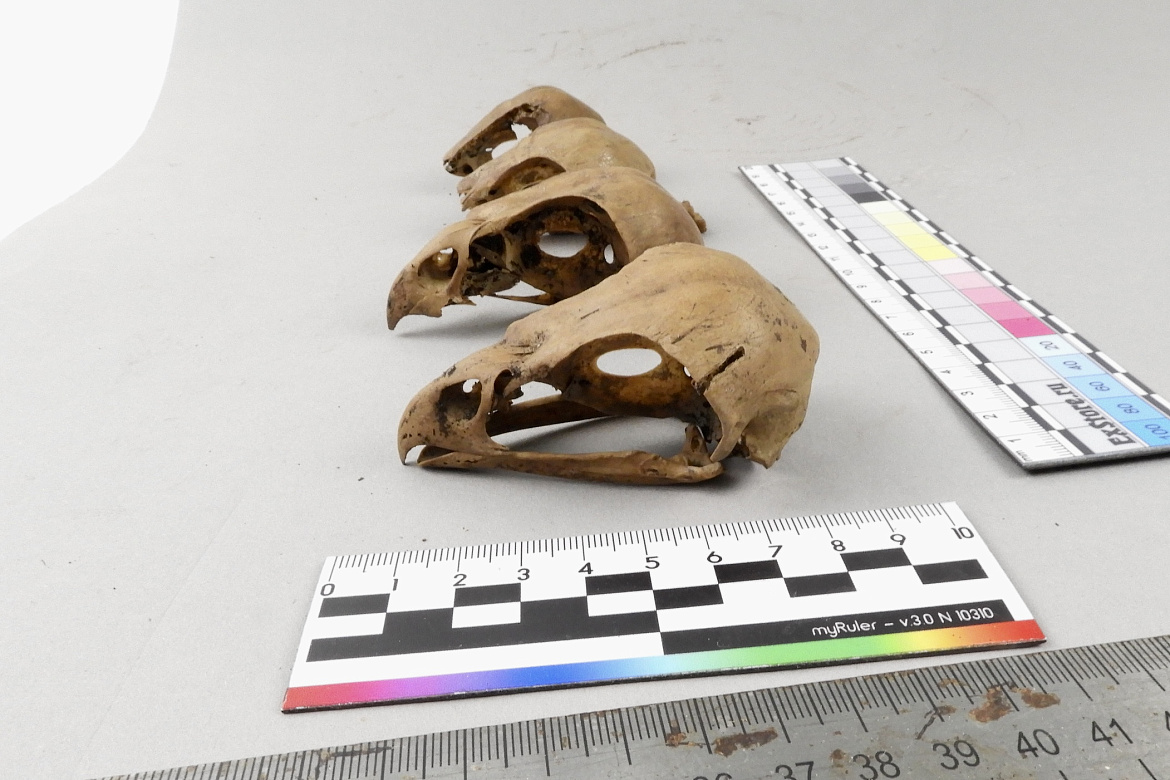 В НовГУ рассказали, какому виду принадлежат черепа хищных птиц, которые были найдены на Пятницком раскопе в Старой Руссе в 2023 году. Это черепа ястребов-тетеревятников — птицы, которую в Древней Руси использовали для охоты практически на любую дичь, от куропаток до гусей и зайцев. Это подтверждает версию, что в XII веке жители исследуемой усадьбы увлекались соколиной охотой.