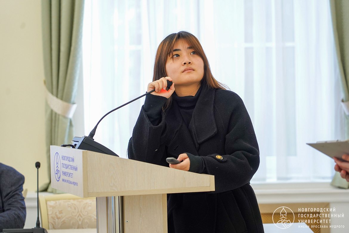 Студентка Цзэн Чжау, рассказывая об истории, архитектуре и культурном коде Великого Новгорода, особое внимание уделила уникальному демократическому строю древнего города.