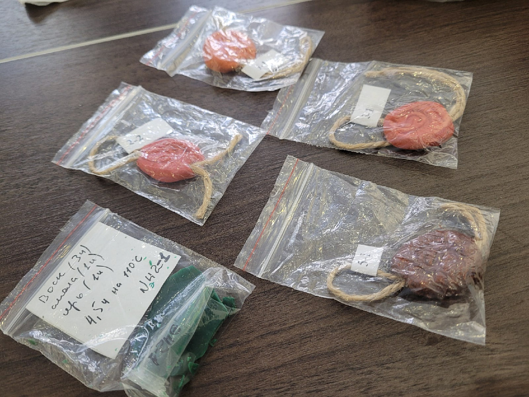 Лектор рассказала о работе группы учёных, исследовавших документы меровингского периода на папирусе (Меровинги — первая династия франкских королей, правившая с конца V до середины VIII века во Франкском государстве, — прим. ред.). Документы были скреплены печатью, из которой торчали некие волокна, глубоко входившие в воск.