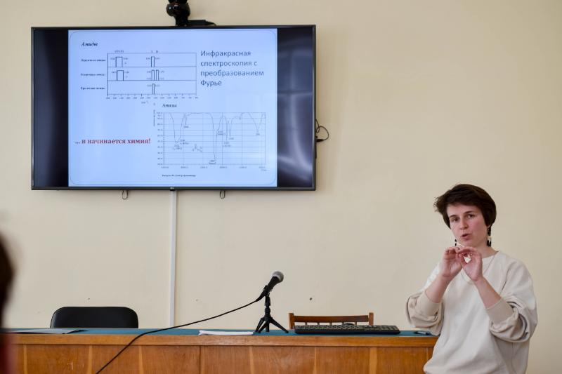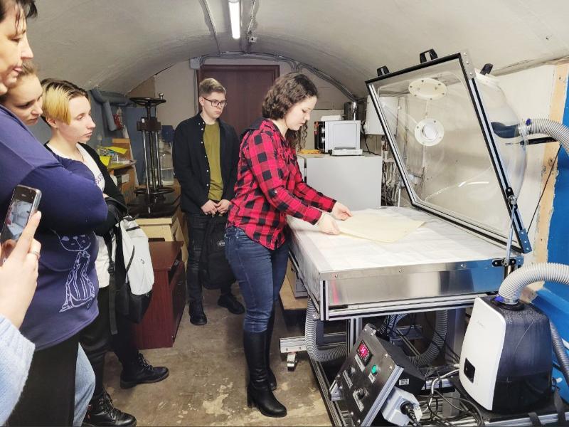 Заведующая лабораторией комплексного исследования рукописных памятников архива Екатерина Носова провела для студентов лекцию. Учёная рассказала об исследованиях документов под ультрафиолетовым и инфракрасным излучениями, о реставрации, физико-химических методах работы с источниками. В ходе практической части студенты рассмотрели под микроскопом итальянскую грамоту XVI века, познакомились с методом инфракрасной спектроскопии с преобразованием Фурье и принципами работы реставрационного оборудования.
