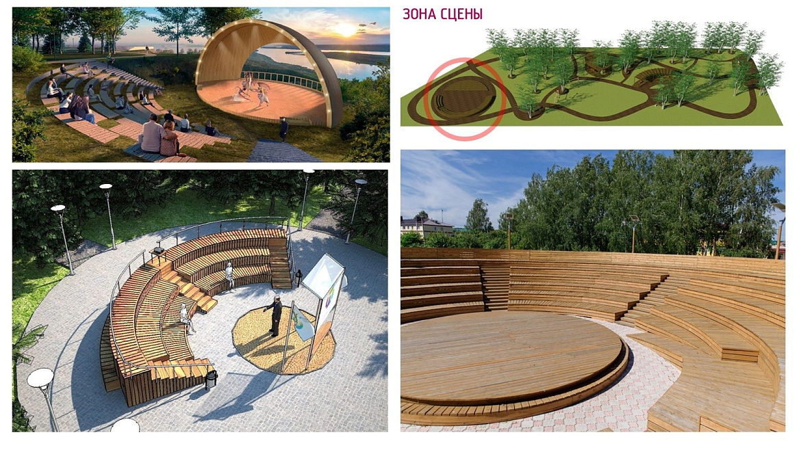 На территории автор предлагает разместить два прогулочных маршрута, создать фотозону, зоны тихого отдыха со скамейками, скворечниками, открытой библиотекой и качелями. Также проект предполагает создание сцены для мероприятий на свежем воздухе и зону цветников. Концепция разработана с учётом пожеланий не только школы, но и местных жителей.
