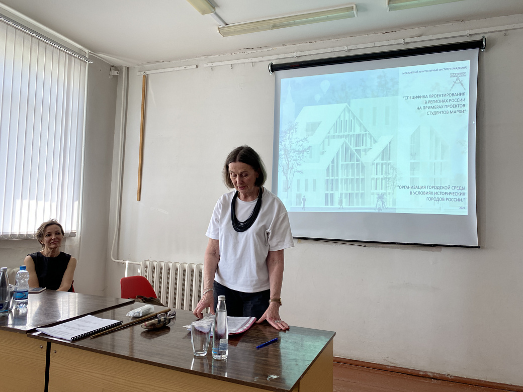 Ассистент МАРХИ Елена Андриасова представила принципы формирования общественно-рекреационных центров в исторических городах России на примере Великого Новгорода.