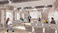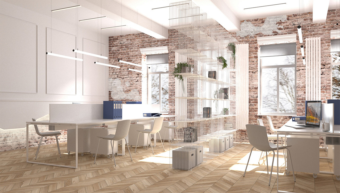 — Основная сложность заключалась в восстановлении исторической атмосферы здания, так как оно значительно пострадало в годы Великой Отечественной войны, неоднократно перестраивалось, — рассказала Владислава Сидорова. — Прежде чем приступить к проектированию, я искала фотографии, справки о доме, особенно об интерьере. Информации было очень мало, поэтому обратилась к фотографиям интерьеров домов того же времени постройки. Одним из решений оформления интерьера стало открытие кирпичной кладки, которой уже двести лет. В моем проекте кладка открыта в конференцзале на первом этаже и в совмещенном коворкинге на втором этаже. Мебель в этих помещениях максимально лаконична и выполнена в белом цвете, чтобы акцентировать внимание на архитектуре пространства.